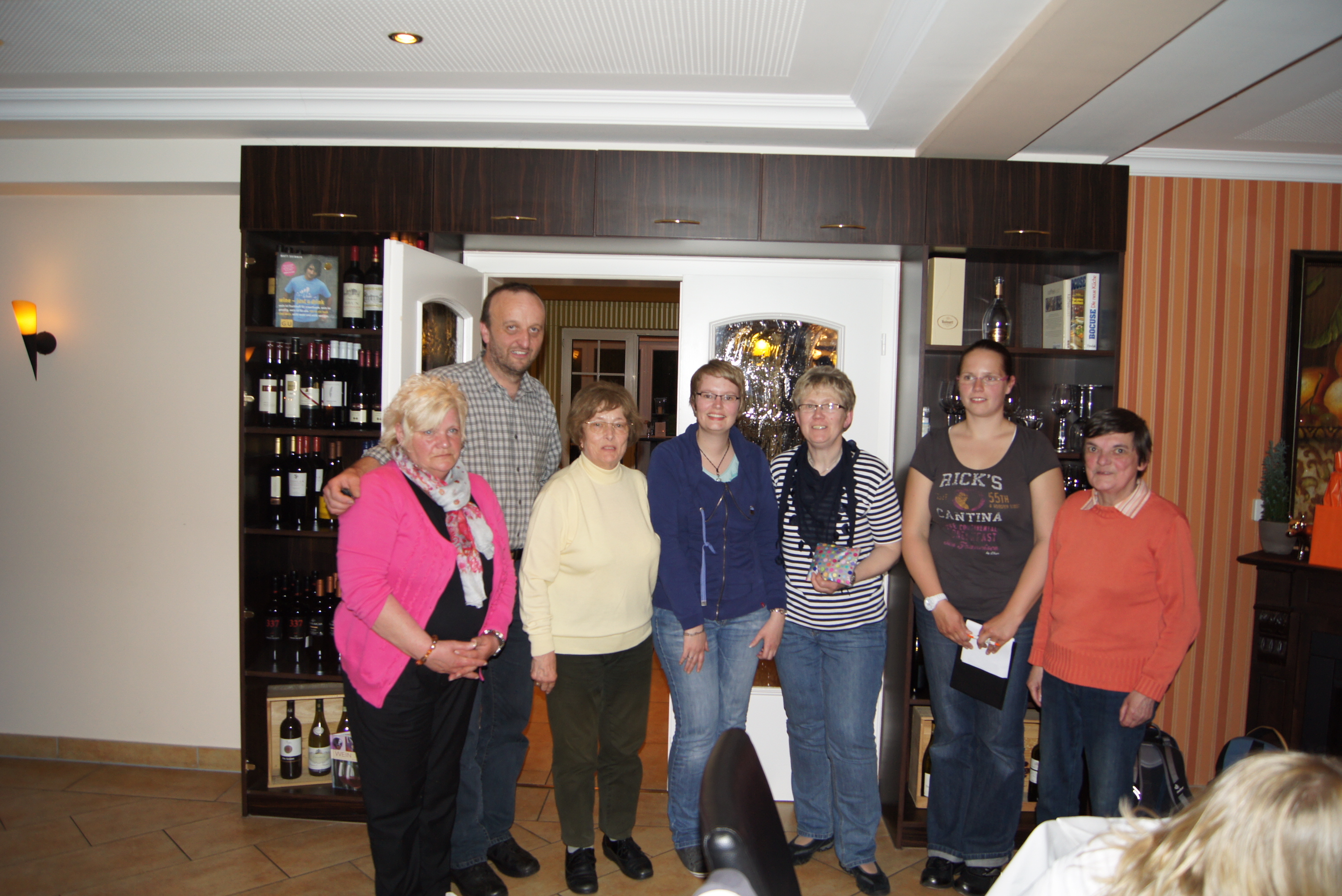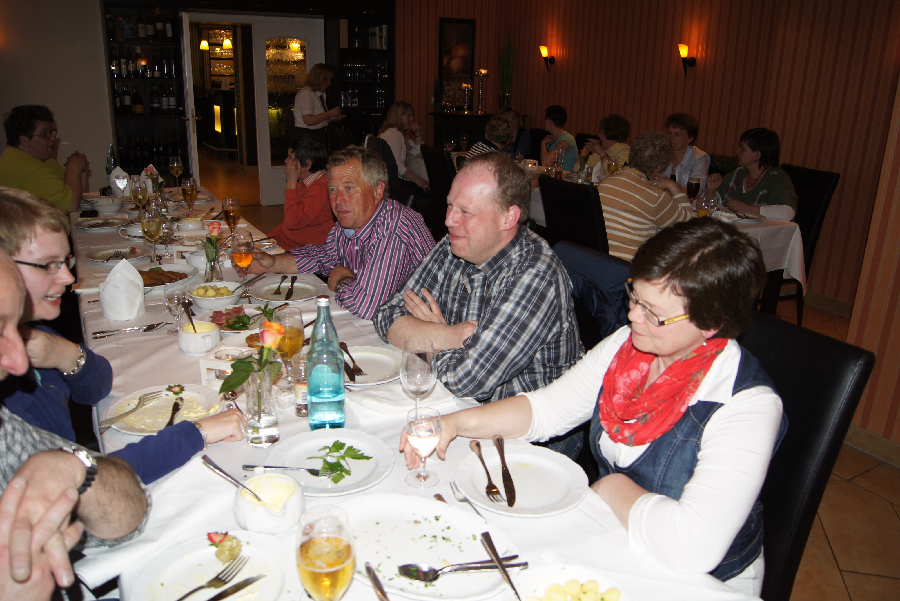 Den Abschluss dieses sehr gelungenen Tages bildete dann das Abendessen im Restaurant „Ratsstuben“ in Rehden. Nachdem der Bus die Gruppe wieder zurück gebracht hatte klang der Tag dort bei einem leckeren Spargelessen aus. Nach der Stärkung verkündete Verena Wieling dann die Siegergruppen der Wettbewerbe und verlieh kleine Präsente an die Teilnehmer. Sieger wurde die Gruppe 1 mit Thomas Langhorst, Angela Weghöft, Edith Siebel, sowie Elke Thamm. Den zweiten Platz belegte die Gruppe 2 mit Anneliese Schipplock, Marion Lowak, Britta Weise, Doris Hülsmann und Annemarie Nackenhorst. Der dritte Platz ging an Gruppe 3 mit Norbert Gottwald, Heike Gottwald, Melina Abratis, sowie Gerhard Lanz.