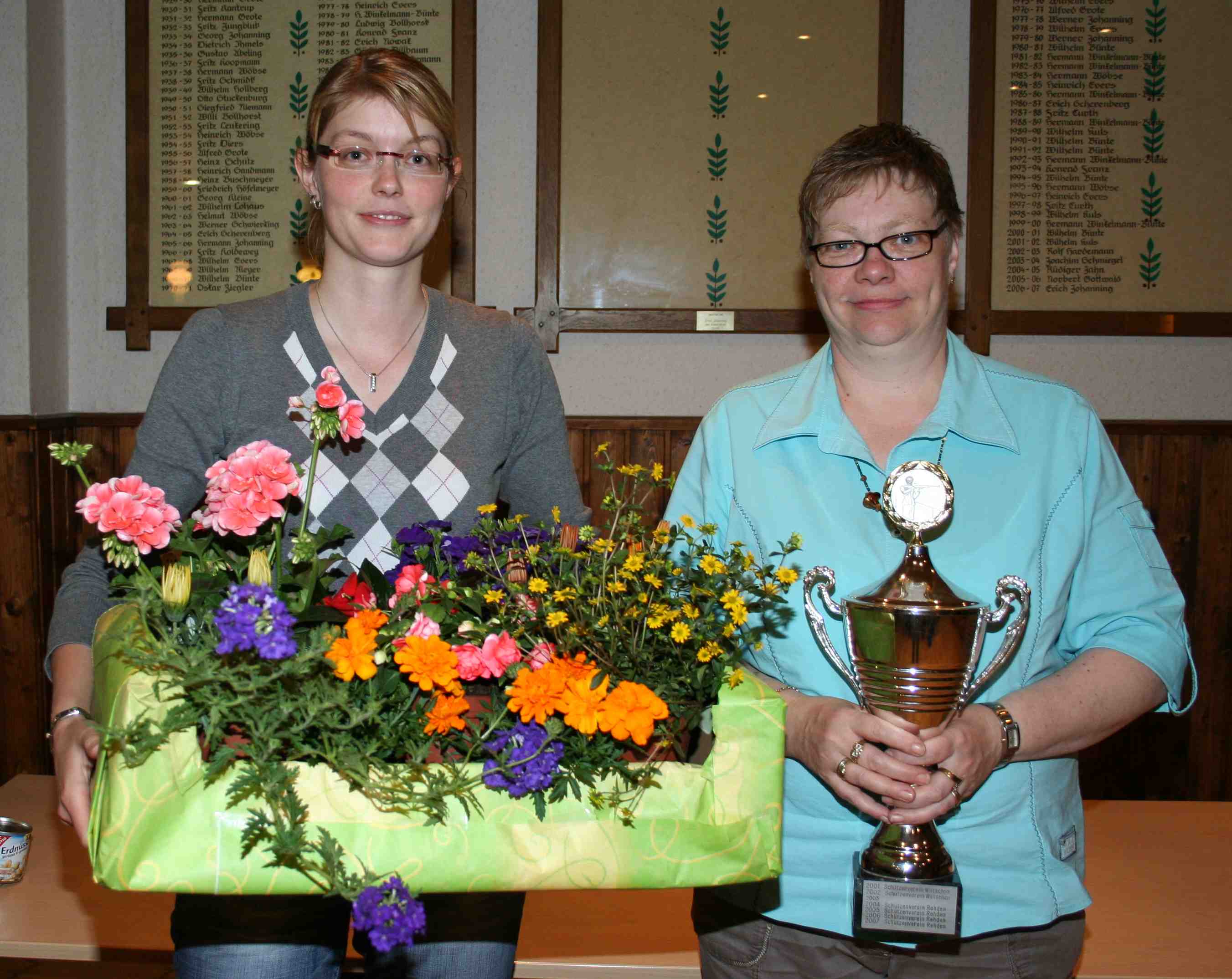 Beim Schiessen um den begehrten Wanderpokal wurden 12 Schützinnen je Verein in die Wertung genommen. Am Schluss hatten die Wetscher Damen 335 Ring und die Rehdener 351 Ring von 360 möglichen Ringen erreicht. Somit siegte in diesem Jahr die Mannschaft aus Rehden. Hieraus ergab sich auch das Ergebnis der Tagesbesten. Dies wurde Claudia Schmidt aus Rehden .Sie erhielt einen Blumenkorb.