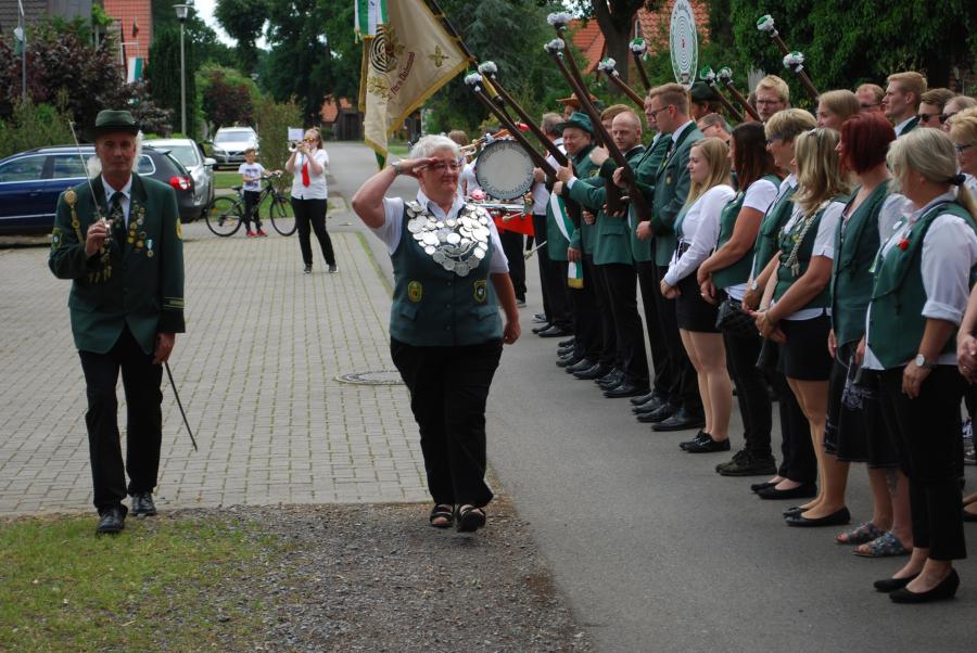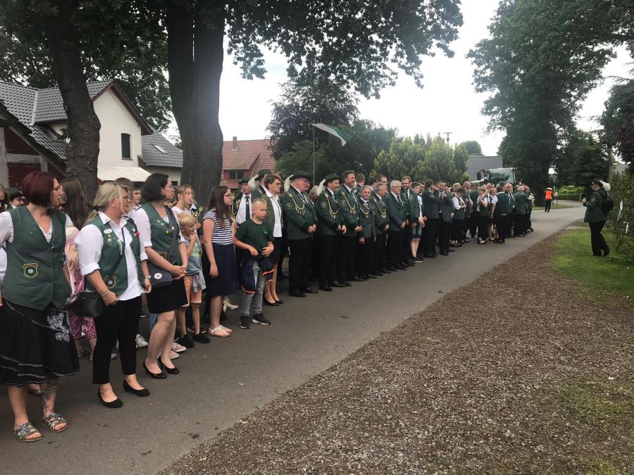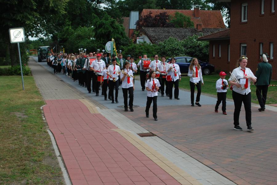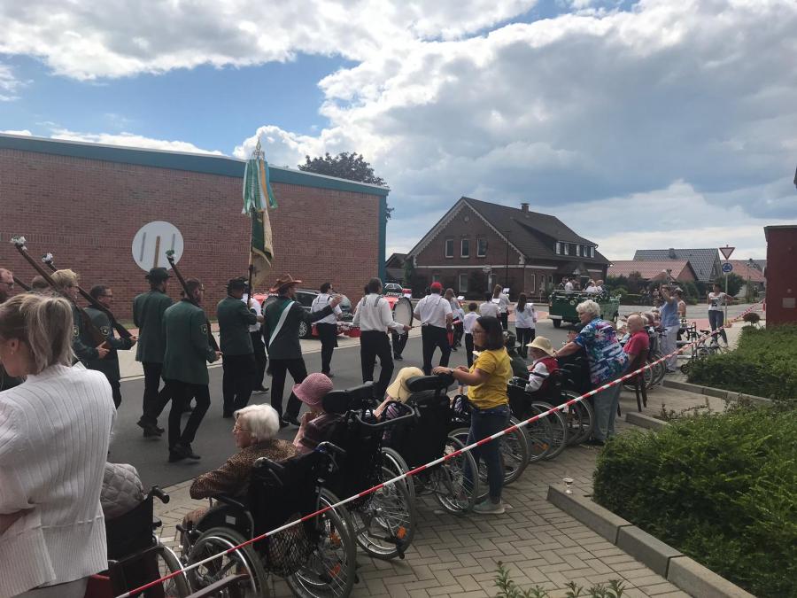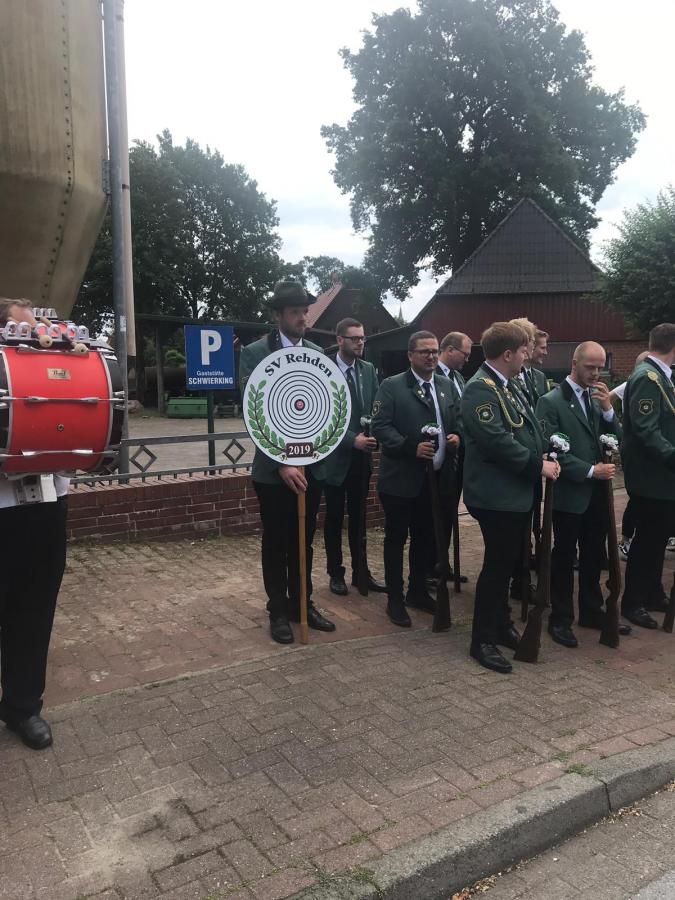 Musikalisch gab es eine Premiere beim Rehdener Fest: Der Lindenstedter Musikzug aus Bassum sorgte für die Marschmusik. Sowohl Präsident Thomas Nowak als auch sein Stellvertreter Tobias Winkelmann-Bünte und das Schützenvolk waren von der Leistung des Spielmannszugs begeistert.