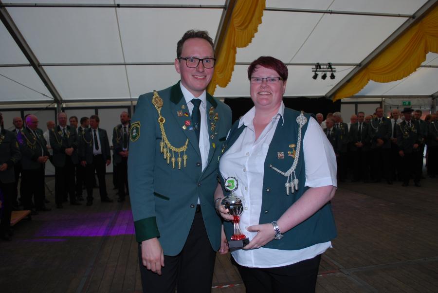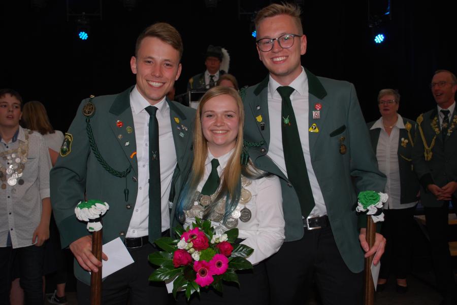 Folgte in Sachen Königsthron in diesem Jahr auf eine Frau ein Mann, war es beim Jugendkönig genau anders herum. Auf Tobias „der Partykönig“ Bollhorst, der seinem Beinamen laut Nowak immer wieder gerecht geworden war, folgte eine Frau. Leonie Ripking steht als neue Jugendkönigin des Schützenvereins Rehden fest. Sie trägt den Beinamen „die Einsatzbereite“, weil sie überall mit vollem Einsatz dabei sei. Ob Feuerwehr, Tanzsport oder der Schützenverein, sie gebe immer 100 Prozent. Zum Prinzgemahl wählte sie Niklas Bollhorst. Vizekönig wurde Ruwen Schilling.