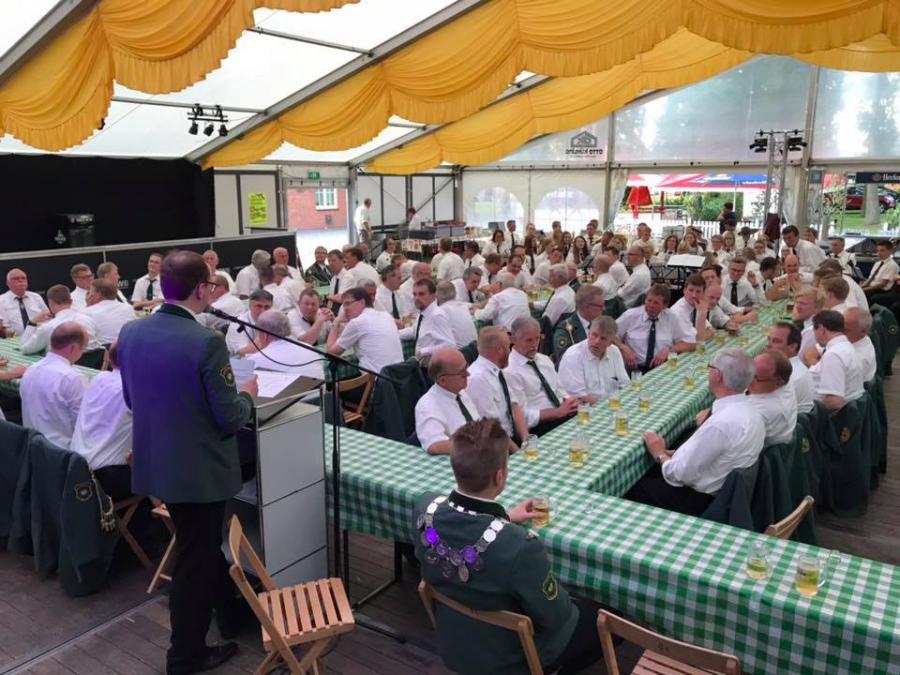 Besonders hieß er den Ehrenpräsidenten Harry Johanning sowie Bürgermeister Wilhelm Grelle und Schützenwirt Karl-Wilhelm Bruns willkommen und bedankte sich beim Musikzug Lutten für die tolle Marschbegleitung.
