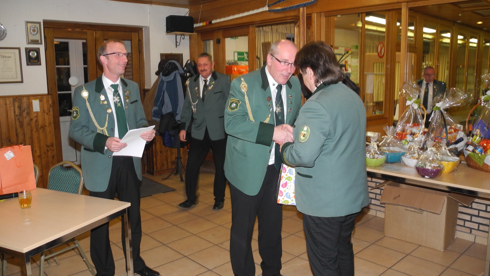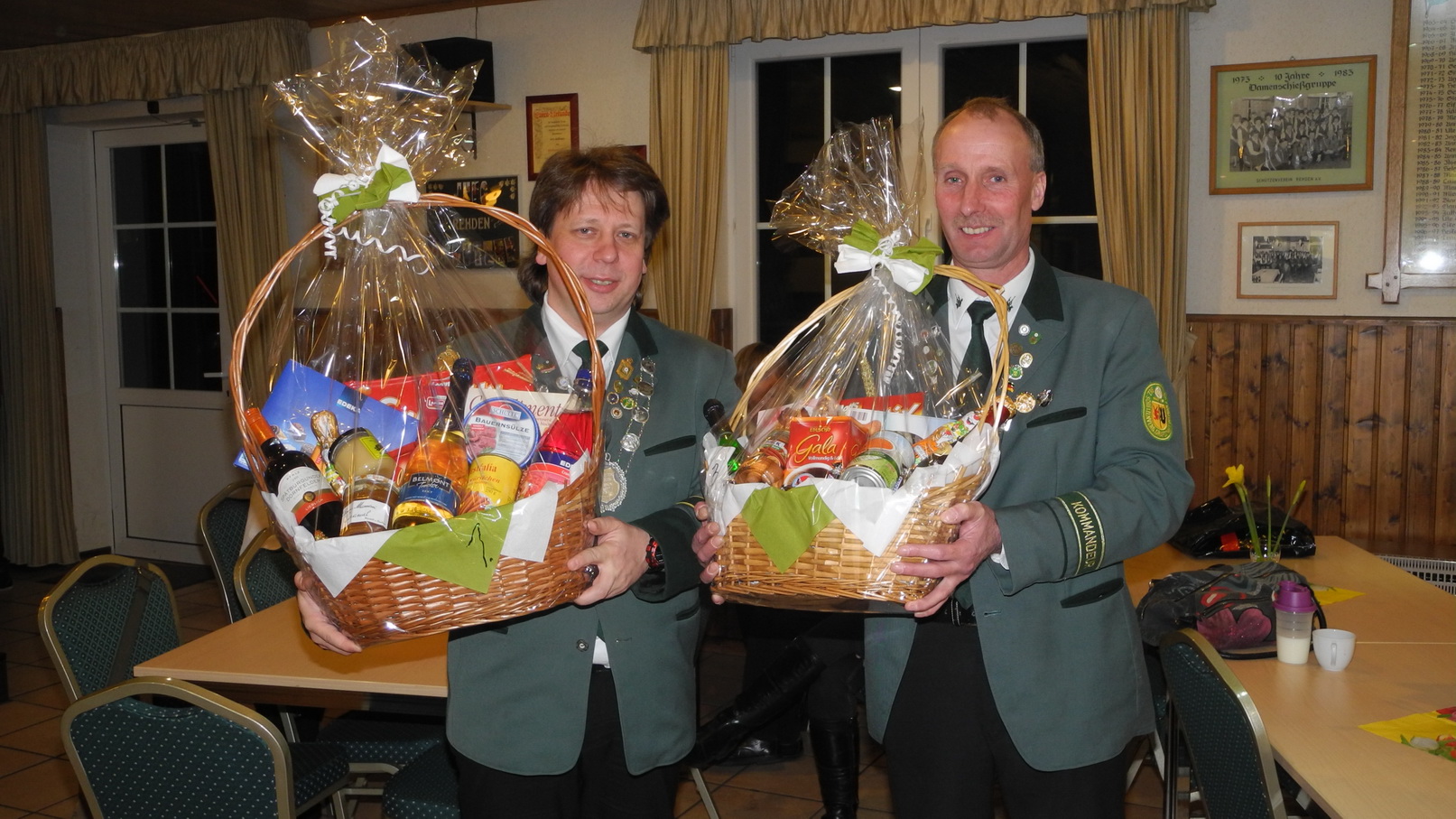 Am Ende warteten dann alle gespannt auf die Entscheidung beim Glücksschießen. Hier hatte SM Thomas Nowak das Glück auf seiner Seite und konnte einen prall gefüllten Präsentkorb in Empfang nehmen. Der Vizepräsident Gerhard Lanz und Kommandeur Klaus Bollhorst waren die folgenden Glücksschützen an diesen Tag.