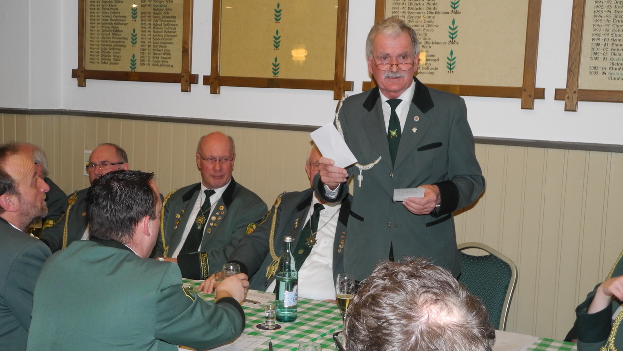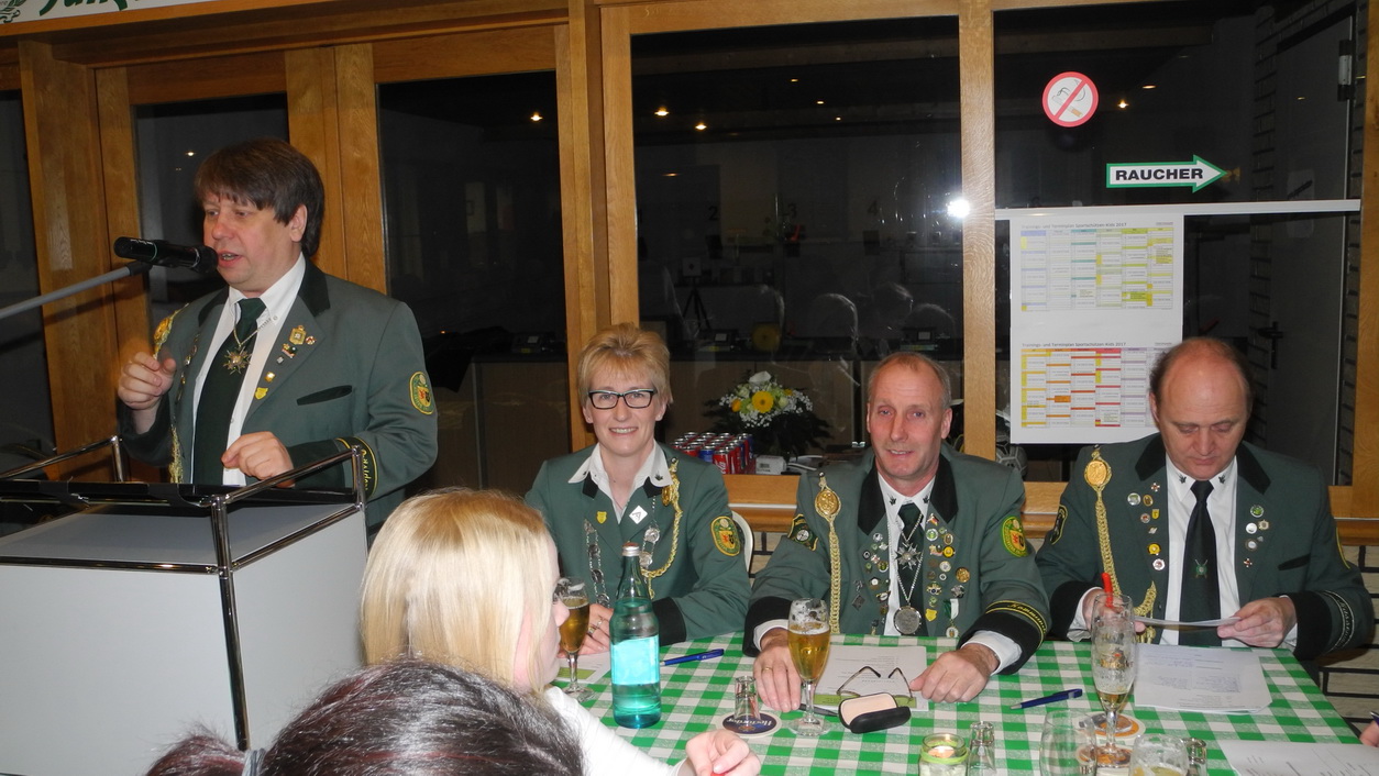 Nachdem der erste Vorsitzende Thomas Nowak Mitglieder und Ehrengäste begrüßt hatte, verlas erster Schriftführer Michael Rapaic das Protokoll der vergangenen Versammlung, Detlef Imsande klärte die Mitglieder über die Kassenlage auf. Die Kasse befände sich in einem guten Zustand, woran nicht zuletzt das sehr gut verlaufene Kreiskönigstreffen seinen Anteil hatte.