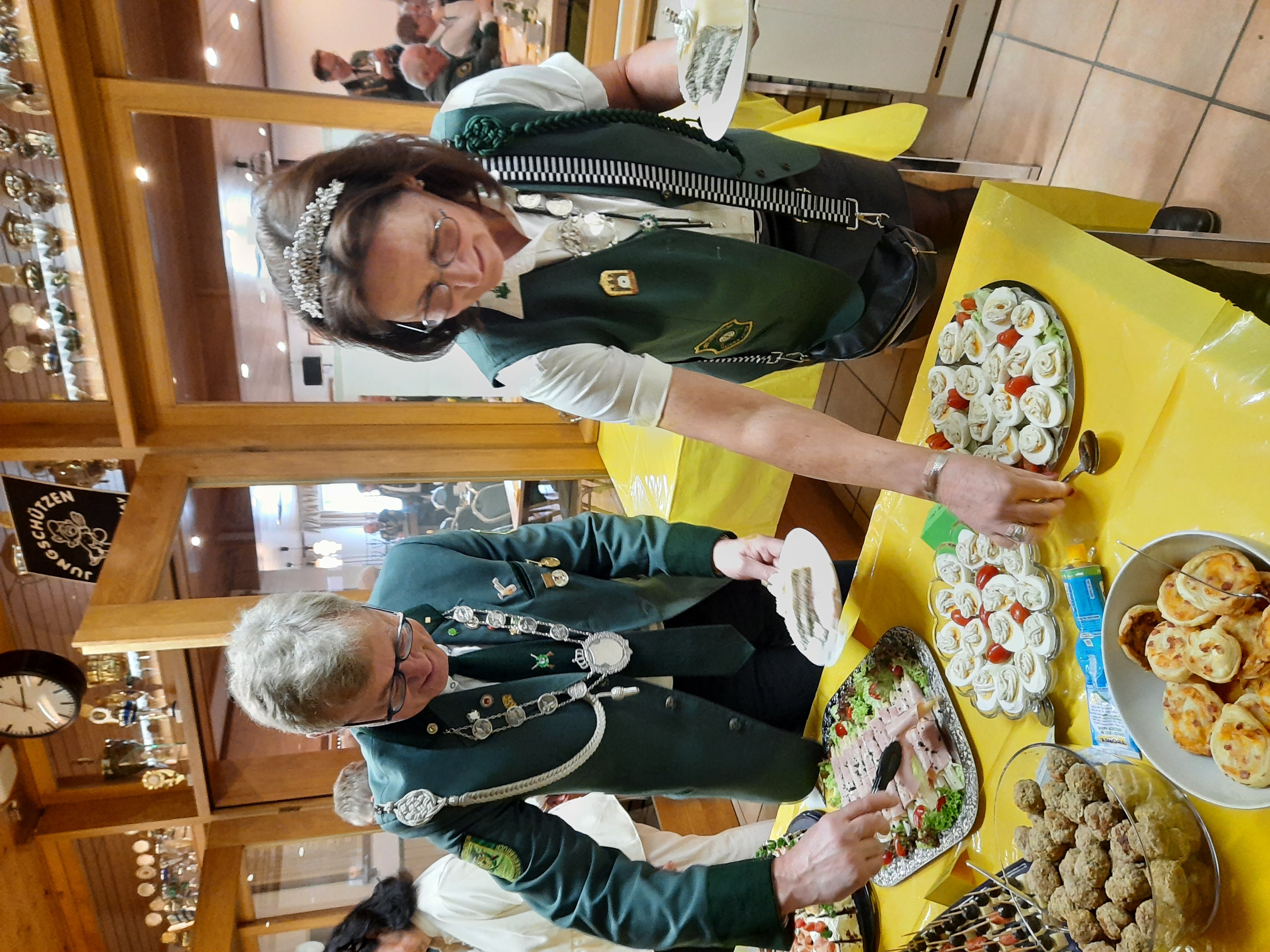 Die Vorstandsmitglieder hatten es sich wieder einmal nicht nehmen lassen, eine Vielzahl an schmackhaften Torten und herzhaften Leckereien für das reichhaltige Buffet beizusteuern, welches selbstverständlich durch das amtierende Königspaar Klaus Schilling „die Tanzlegende“ und seiner Partnerin Beate Kalvelage eröffnet wurde.