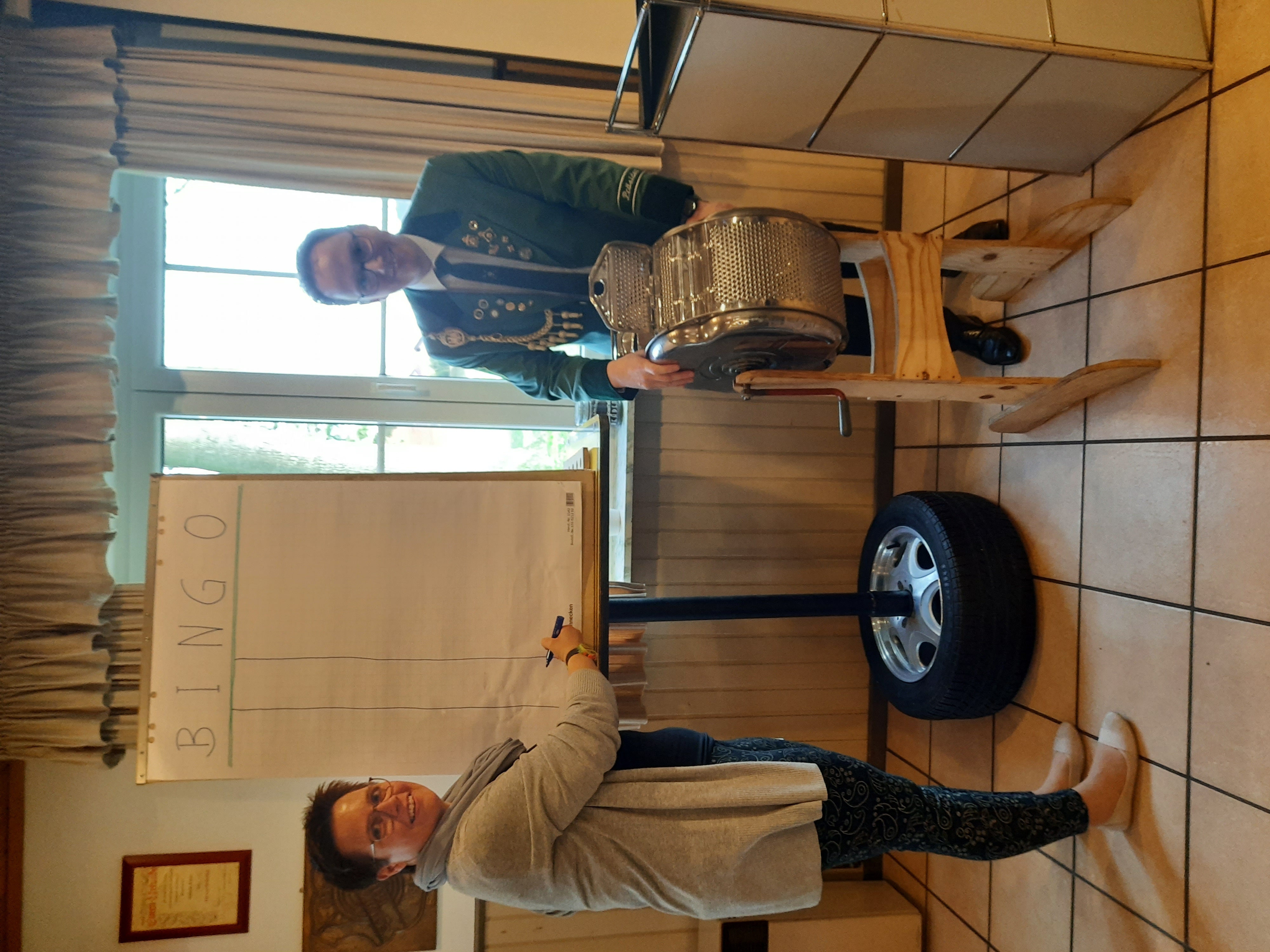 Im Anschluss an das Kaffeetrinken schlüpfte Tobias Winkelmann-Bünte bereits zum wiederholten Mal in die Rolle des „Bingo-Bären“ und moderierte einige Runden des beliebten „Bingo-Spiels“. Unterstützt wurde er dabei von einer Reihe fleißiger Bingo-Helfer, die sicherstellten, dass auch jede Bingo-Reihe mit einem tollen Preis oder sogar mit Gutscheinen belohnt wurde.
