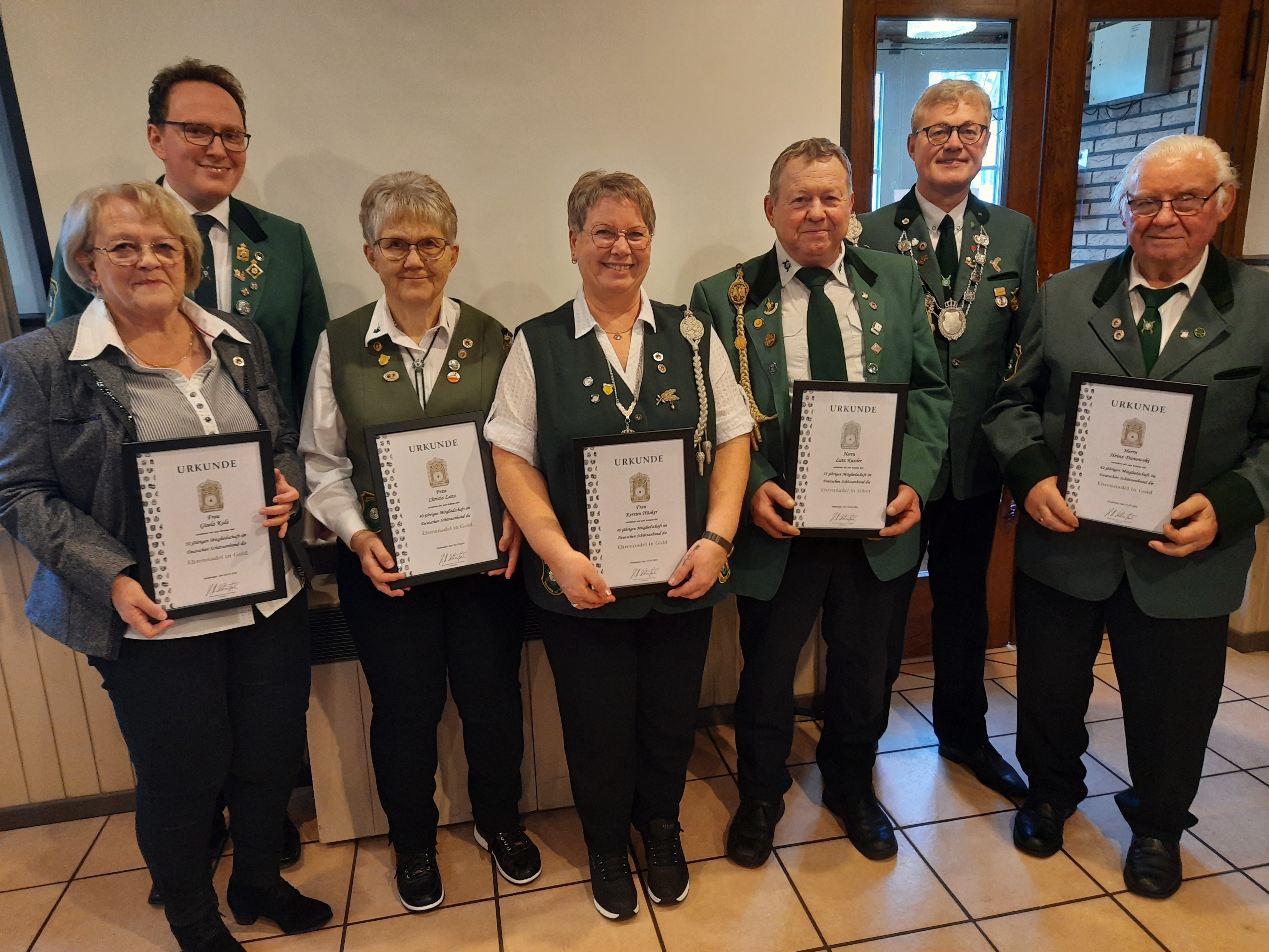 Weiterhin wurde die Ehrennadel in Silber für 25-jährige Vereinszugehörigkeit verliehen an Lutz Kassler. Die Ehrennadel in Gold für 40-jährige Vereinszugehörigkeit ging an Kerstin Hüsker, Christa Lanz, Christa Meier, Heinz Danowski und Bernt Rechtermann. Für 50-jährige Vereinszugehörigkeit wurden geehrt: Anni Curth, Sieglinde Grewe, Gisela Kuls und Werner Blumberg. Für 60-jährige Vereinsmitgliedschaft erhielt Horst Tinnemeyer die Ehrung. Einmalig in der Vereinsgeschichte ist die Vereinszugehörigkeit von 75 Jahren. Diese Ehrung erhielt: Heinrich Strümpler