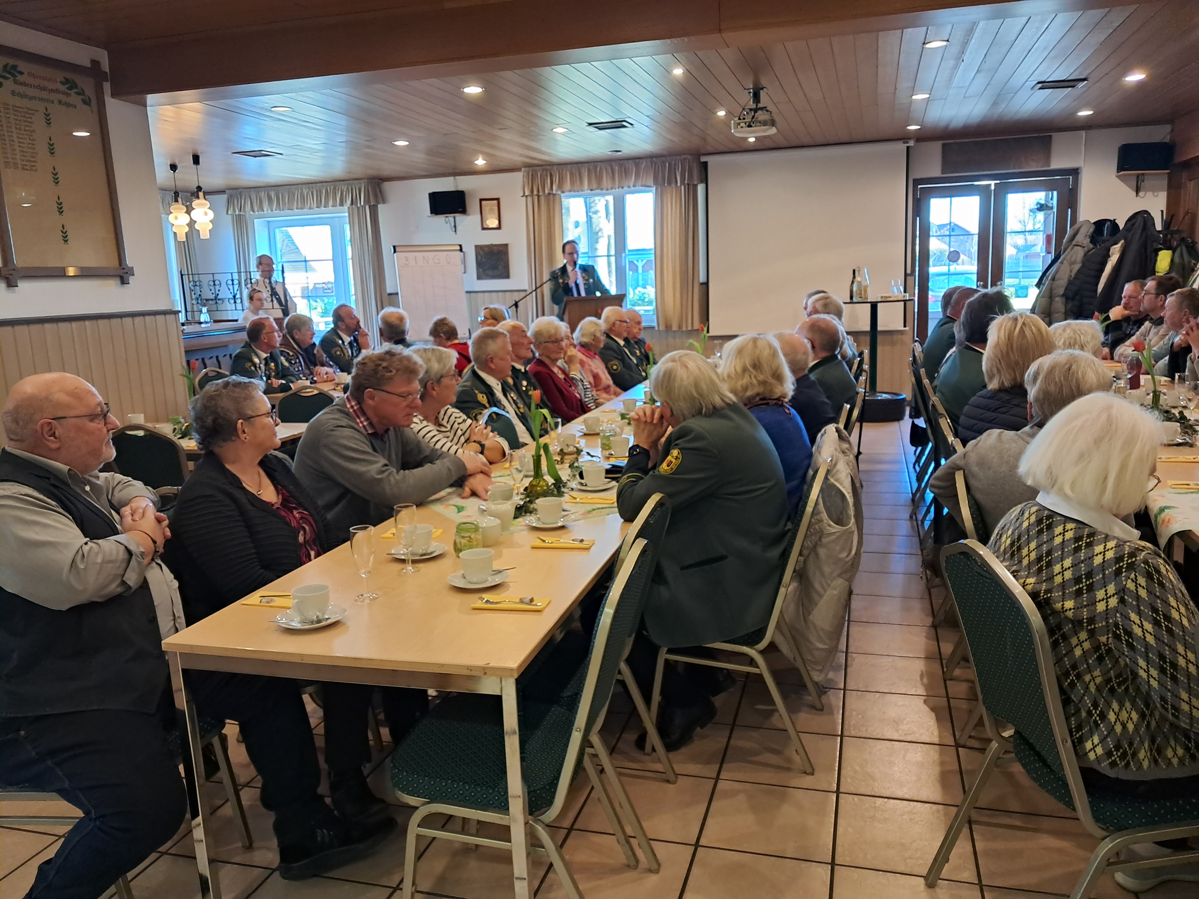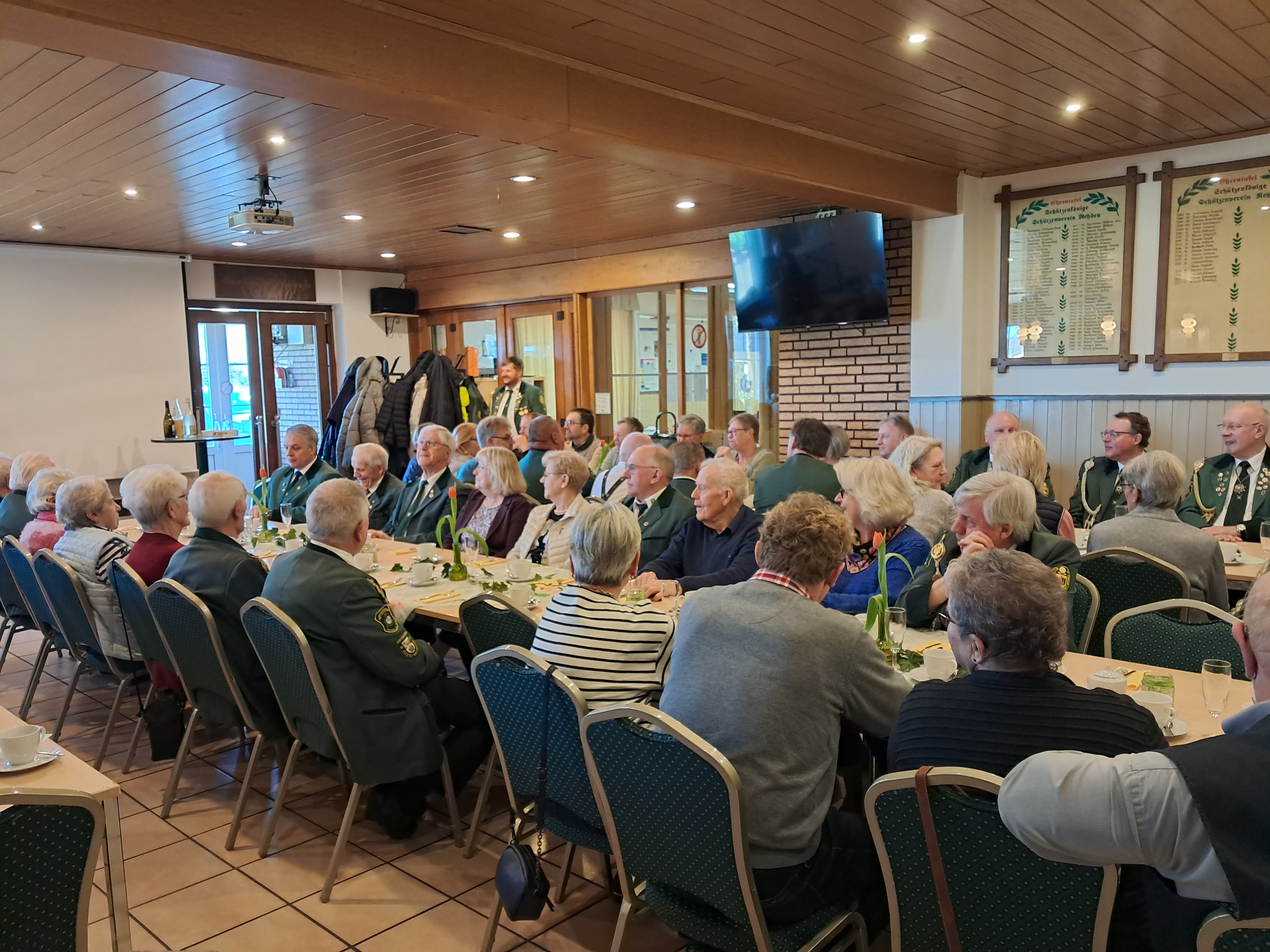 Zum Abschluss des geselligen Nachmittages zog dann noch ein Film aus dem Jahr 2000 über das Kreiskönigstreffen alle Gäste in seinen Bann, so dass noch einmal eine ungewohnte Ruhe in der Schießhalle einkehrte und viele der Anwesenden in Erinnerungen aus der guten alten Zeit schwelgten.