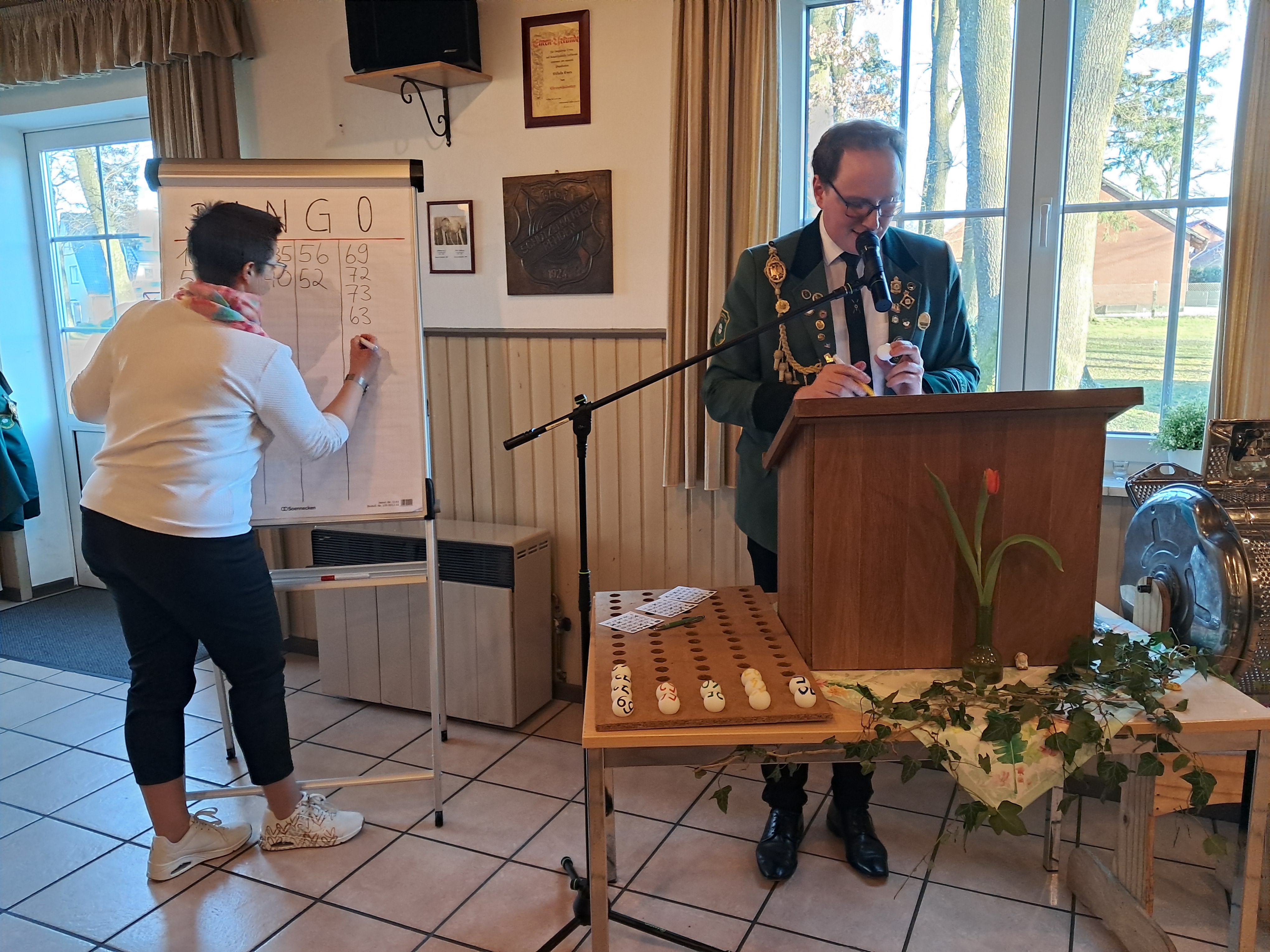 Im Anschluss an das Kaffeetrinken schlüpfte Tobias Winkelmann-Bünte bereits zum wiederholten Mal in die Rolle des „Bingo-Bären“ und moderierte einige Runden des beliebten „Bingo-Spiels“. Unterstützt wurde er dabei von einer Reihe fleißiger Bingo-Helfer, die sicherstellten, dass auch jede Bingo-Reihe mit einem tollen Preis oder sogar mit Gutscheinen belohnt wurde.